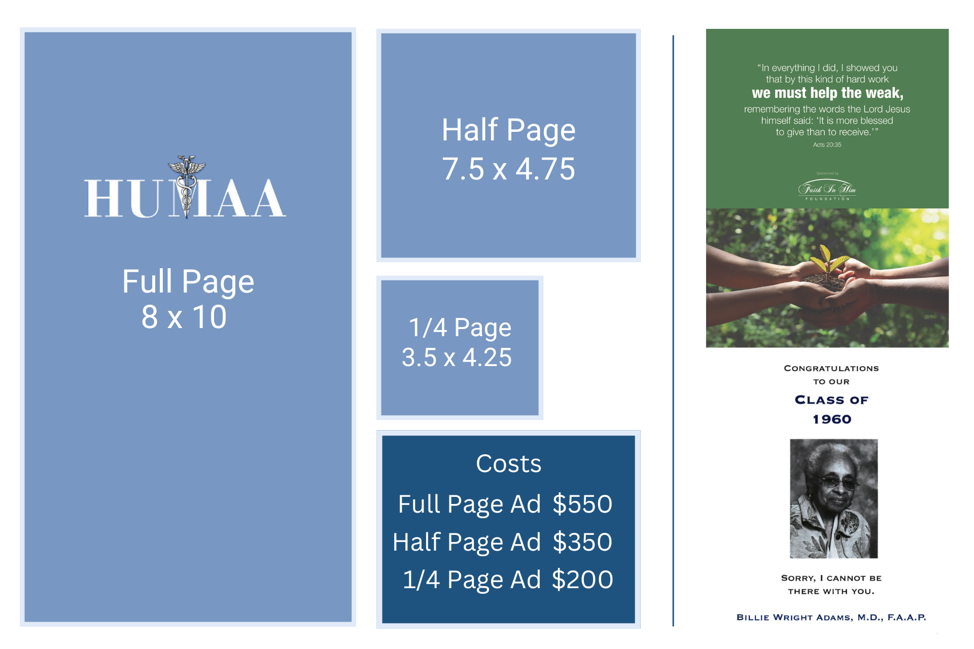 Now's your chance to celebrate all that is you. Feature your accomplishments, business, or family life in the souvenir Gala Program. Share your precious memories during your time at HUCM with classmates, faculty, and more!